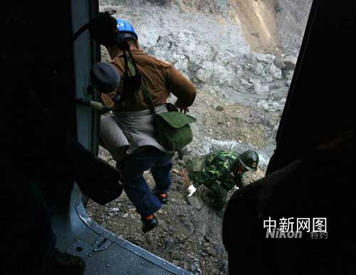 中新網(wǎng)5月31日電 題:記者災(zāi)區(qū)采訪手記:從直升飛機(jī)上跳到唐家山