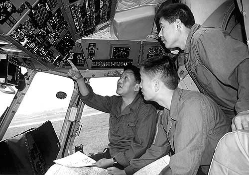 機(jī)長(zhǎng)邱光華,51歲,羌族,四川茂縣人。 1957年4月出生,1974年4月入伍,1976年6月入黨,大專文化,大校軍銜,四種氣象飛行指揮員、副師職特級(jí)飛行員,近年多次執(zhí)行軍事演習(xí)、衛(wèi)星回收和搶險(xiǎn)救災(zāi)等重大任務(wù),總飛行時(shí)間5800多小時(shí),榮立二等功2次,三等功4次。