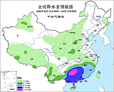 中新網(wǎng)6月12日電 據(jù)問天網(wǎng)消息,中央氣象臺(tái)6月12日06時(shí)發(fā)布未來三天天氣預(yù)報(bào):預(yù)計(jì),今明兩天,地震災(zāi)區(qū)無明顯降雨,以多云天氣為主,有時(shí)有小陣雨,氣溫較高,濕度較大,其中,四川成都、綿陽、德陽、廣元以及甘肅文縣、陜西略陽、寧強(qiáng)等地日最高氣溫可達(dá)30~32℃,帳篷內(nèi)溫度36~40℃,四川汶川、茂縣、理縣日最高氣溫可達(dá)28~30℃,帳篷內(nèi)溫度32~35℃,請(qǐng)注意采取防暑降溫措施。14~15日,地震災(zāi)區(qū)將有一次中雨、局地大雨的天氣過程,降雨量一般為10~25毫米,局部地區(qū)雨量可達(dá)30~40毫米。