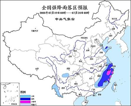 中新網(wǎng)7月19日電 中央氣象臺2008年7月19日06時繼續(xù)發(fā)布暴雨橙色警報:預(yù)計今天白天到夜間,福建大部、浙江、廣東東北部、江西南部和東部、江蘇南部、上海以及山東半島等地有暴雨,其中,福建北部、浙江中南部等地的部分地區(qū)有大暴雨。