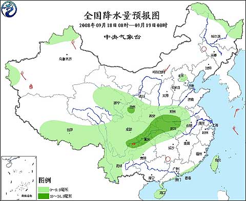 2008年9月18日8時(shí)—9月19日8時(shí)全國降水量預(yù)報(bào)圖