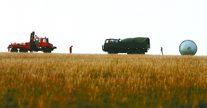 這片草場大體位于“神五”、“神六”著陸的位置之間,距二者均約10公里。記者在現(xiàn)場看到,模型傾斜倒在草場,身穿“中國航天搜救”制服的人員證實(shí),這是“神七”主著陸場最后一次大型綜合演練。