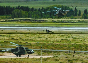 昨日,直升機(jī)起飛參加“神七”主著陸場搜救演習(xí)。 郭超 攝