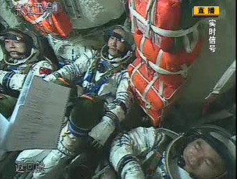 資料圖:當(dāng)船箭分離,神七飛船順利進(jìn)入預(yù)定軌道后,航天員翟志剛將手中的小冊子放開展示失重狀態(tài)。(視頻截圖)