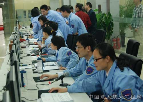 北京航天飛行控制中心忙碌的技術(shù)人員