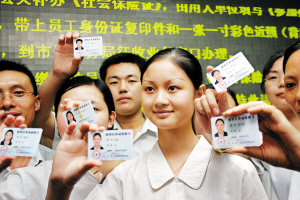 農(nóng)民工喜領社會保障卡。通訊員 祝云才 攝