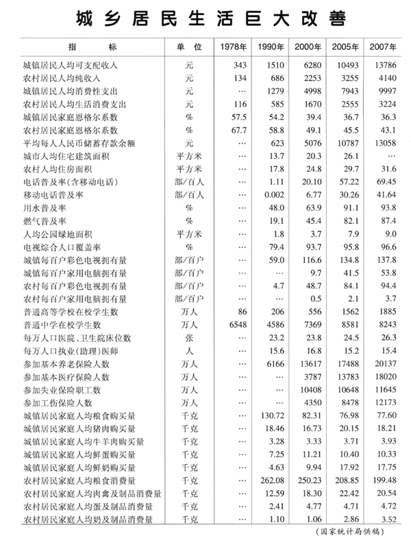 中國30年改革開放成就統(tǒng)計(jì)表