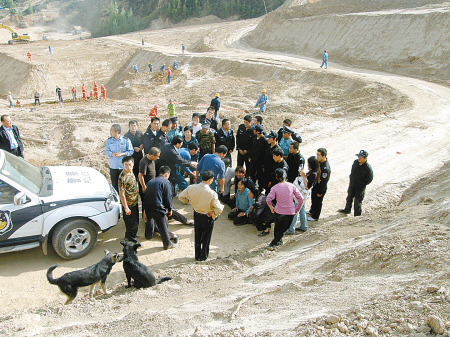 國務(wù)院事故調(diào)查指導(dǎo)組到現(xiàn)場調(diào)查時遇難者家屬喊冤。