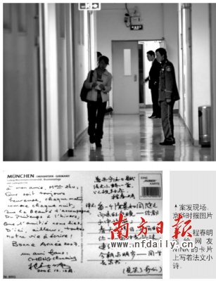發(fā)言人的介紹,也證明了部分網(wǎng)友博客中的說法。網(wǎng)友“夜江湖”稱:“昨晚大家在各宿舍討論案情,一說到兇手的專業(yè)、籍貫,馬上就想到一個人:F某某。一查證,果然就是這個人,就住在我們樓下。在校內(nèi)網(wǎng)上,還能看到他的照片,長得很斯文!
