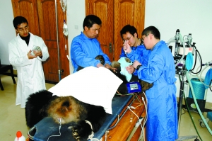 工作人員正在對(duì)大熊貓進(jìn)行“體檢”。據(jù)《華西都市報(bào)》