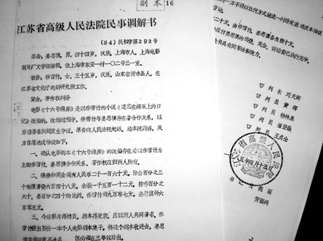 24年前,1984年4月,因為作品合作而引發(fā)的電影故事片《十六號病房》編劇署名之爭,在雙方“筆墨官司”糾纏了八九個月之后,上海電影制片廠文學(xué)部編輯姜思慎以侵犯著作權(quán)之訴,將小說《遺忘在病床上的日記》的原著作者喬雪竹告上了法庭。該案成為我國建國以來首例著作權(quán)糾紛案,一時引起了中外輿論的高度關(guān)注。