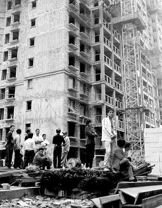 記者在采訪中了解到,事故發(fā)生后,駐地武警和霞浦縣司法機關(guān)有關(guān)人員,迅速將現(xiàn)場控制起來,并想將尸體運往火葬場。但遭到民工,特別是江西籍民工的強烈反對,為此,雙方曾發(fā)生沖突。“縣公安局副局長曾飛也被打了!币晃恢槿耸扛嬖V記者,“陽光城樓盤的外面,被司法機關(guān)干警和武警里三層外三層圍著;里面,事故現(xiàn)場,死者家屬有的打電話給記者,有的手里拿著鋼筋等,與外面的人對峙。情況十分緊急,縣領(lǐng)導(dǎo)擔心發(fā)生群體性事件,不得不向?qū)幍率泻褪±飬R報。”