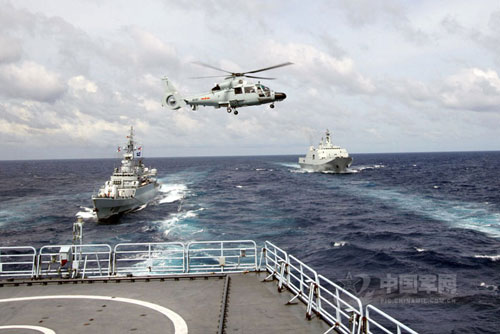 海上戰(zhàn)艦馳騁,空中戰(zhàn)鷹盤旋。11月上旬,南海艦隊(duì)組織支援艦、登陸艦、驅(qū)逐艦、護(hù)衛(wèi)艦、艦載直升機(jī),首次在南沙附近海域開展了一次綜合作戰(zhàn)支援演練。他們?cè)诔晒M織“兩橫一縱”海上補(bǔ)給訓(xùn)練的同時(shí),演練了艦載直升機(jī)起降、懸停、偵察、模擬救援等課目,使艦機(jī)協(xié)同能力有了新的提高。(中國(guó)軍網(wǎng)發(fā) 饒燕文攝)