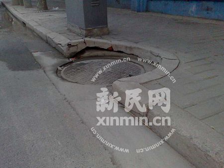 萬航渡路康定路口地面已翹起 新民網(wǎng) 胡彥珣 攝