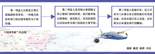 第三利益人自然就是旅行社。據(jù)了解,近幾年來(lái)專(zhuān)門(mén)從事公務(wù)出國(guó)的旅行社發(fā)展迅速,目前全國(guó)已有上百家,集中在廣州、上海、北京、南京、寧波等地。它們靠為公務(wù)團(tuán)安排行程賺錢(qián)!艾F(xiàn)在各級(jí)各地組織的出境、出國(guó)考察活動(dòng),絕大部分是通過(guò)旅游公司出去、并由境外旅游機(jī)構(gòu)接團(tuán)安排行程的,其實(shí)就是公款旅游!毙掠嗍形晃桓刹繉(duì)記者說(shuō)。