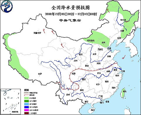 2008年12月9日8時—12月10日8時全國降水量預(yù)報圖