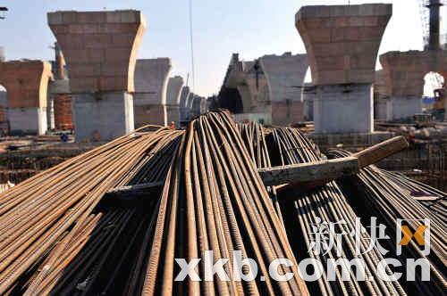 巨大的工地上塵土飛揚(yáng),豎立著數(shù)百座三層樓高、像高架橋一樣的水泥墩,有些上面還有有鋼制的柱子。每10秒就會(huì)有一輛工程車經(jīng)過(guò)。從湖南衡陽(yáng)來(lái)的尹師傅說(shuō),眼前這種情況是最近三個(gè)月才出現(xiàn)的,工地之前還只是一個(gè)大坑。