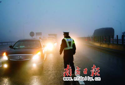 昨日,京珠高速粵北云巖段受冷空氣影響出現(xiàn)急劇降溫,小雨加大霧籠罩了整個高速路段,不斷上升的北上車流在雨霧中緩慢通行。京珠北韶關(guān)站、乳源站、東田站及大橋站北行入口昨天下午封閉約5小時,晚上6時左右恢復(fù)正常。昨晚19時44分,韶關(guān)樂昌發(fā)布道路結(jié)冰黃色預(yù)警信號。過往司機(jī)仍需加倍小心。