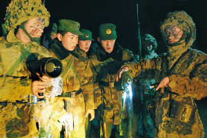 不知不覺,50分鐘過去了。偵察分隊(duì)隊(duì)長(zhǎng)常增榮眼睛依然緊盯著夜視儀顯示屏,心里直撲騰:再過10分鐘,還發(fā)現(xiàn)不了目標(biāo),這場(chǎng)較量就要以偵察分隊(duì)的失敗告終……