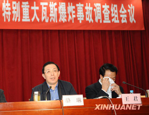 有記者注意到,在會議上,調(diào)查組副組長、山西省省長王君心情沉重。他哽咽著向死難礦工及礦工家屬致歉。王君情緒激動地哽咽許久道: “屯蘭煤礦瓦斯爆炸事故影響極其壞,我們對不起……死難礦工,也……對不起……他們的家屬……”