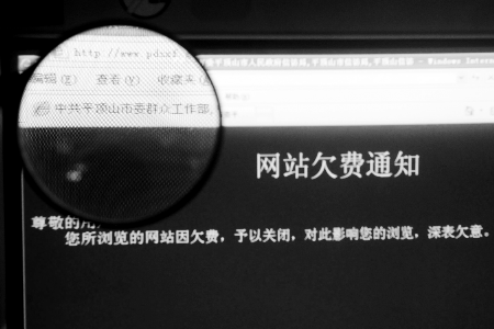 讓他感覺不可思議的是,網(wǎng)站頁面紅底白字寫著一則欠費通知:“尊敬的用戶:您所瀏覽的網(wǎng)站因欠費,予以關(guān)閉,對此影響您的瀏覽,深表欠(歉)意”,落款日期為2008年12月。