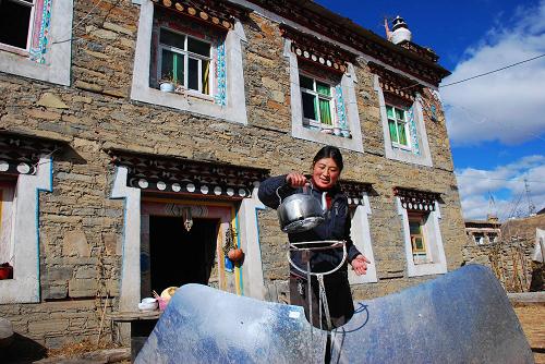 位于四川省甘孜藏族自治州康定縣的塔公鄉(xiāng)牧民新村,臨近公路干線,交通便利,兩層的新建藏式小樓、通村的平坦公路、太陽灶和配套電力設(shè)施,讓50多戶定居在這里的牧民們生活十分愜意。
