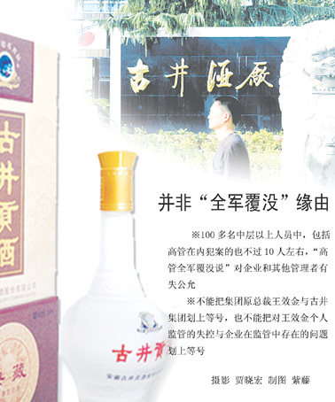 “不論在時空上還是判斷上,都不能這么隨意地將‘全軍覆沒’與古井集團(tuán)高管劃上等號。”曹杰告訴記者,在王效金(古井集團(tuán)原總裁)窩案中,古井集團(tuán)的7名高管只有3人涉案,100多名中層以上人員中,包括高管在內(nèi)犯案的也不過10人左右,“高管全軍覆沒說”對企業(yè)和其他管理者有失公允。