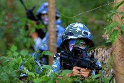 何新瑛指導(dǎo)員向我們介紹,面對未來戰(zhàn)場的惡劣環(huán)境,面對兩棲偵察女兵隊(duì)所擔(dān)負(fù)的特殊任務(wù),其訓(xùn)練的難度強(qiáng)度是一般人難以想像的。作為一名女子陸戰(zhàn)隊(duì)員,每天除完成正常的訓(xùn)練課目外,在體能上必須堅(jiān)持做到“五個(gè)一百”,即100個(gè)俯臥撐,100個(gè)仰臥起坐,100個(gè)蹲下起立,100個(gè)曲臂伸,100次往返跑;同時(shí)還要綁著10多斤的沙包練5公里越野。這些最基本的體能訓(xùn)練要求,使每個(gè)姑娘都面臨著生理和心理的考驗(yàn)。盡管每年新入伍的戰(zhàn)士都有累得掉眼淚,但在部隊(duì)的教育以及戰(zhàn)友的關(guān)心幫助下,姑娘們都很堅(jiān)強(qiáng),憑著忠誠于黨、獻(xiàn)身使命的崇高追求和熾熱情懷,一無往顧地沖在軍事斗爭準(zhǔn)備的第一線。