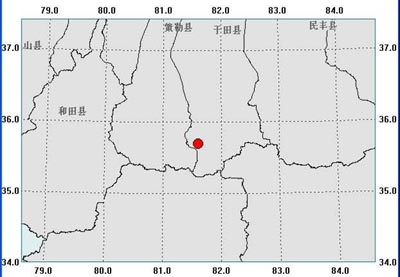 據(jù)測(cè)定,此次地震震中位于北緯 35.4°, 東經(jīng) 81.5°,目前還沒有人員傷亡和財(cái)產(chǎn)損失的報(bào)告。