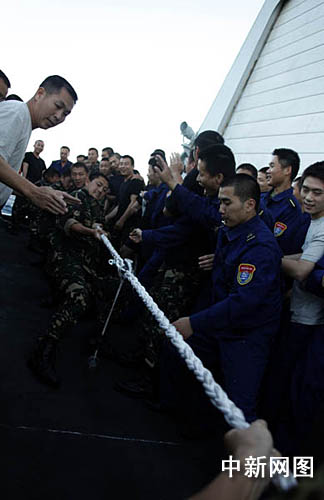 中新網(wǎng)“?凇迸3月19日電 (記者 孫自法) 3月中旬,為豐富廣大護(hù)航官兵業(yè)余生活,中國海軍艦艇編隊“?凇碧枌(dǎo)彈驅(qū)逐艦在護(hù)航之余組織舉辦第二屆甲板運(yùn)動會,艦上官兵積極參與,各類比賽、訓(xùn)練項目精彩紛呈。編隊三亞起航遠(yuǎn)赴亞丁灣、索馬里海域執(zhí)行護(hù)航任務(wù)近三個月來,廣大護(hù)航官兵身心狀態(tài)良好、士氣昂揚(yáng)。