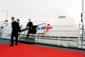 醫(yī)院船共有8個手術(shù)室,總面積達520平方米,配有遠程醫(yī)療會診系統(tǒng)、新型CT機等高科技設(shè)備。重癥監(jiān)護室里,記者迎面碰到了上海海洋醫(yī)學(xué)研究所的沈俊良教授。他正克服船的激烈搖晃,雙手扶墻慢慢地向外移動。沈教授告訴記者,結(jié)合這次惡劣海況下航行訓(xùn)練,他們對這些醫(yī)療器械進行了各項技術(shù)評估。由于大部分醫(yī)療設(shè)備都不是專門為海上使用設(shè)計的,醫(yī)院船在海上航行特別是大風(fēng)浪航行條件下,設(shè)備的抗震性和精度都需要進行評估,從而為日后訓(xùn)練和執(zhí)行任務(wù)提供科學(xué)依據(jù)。