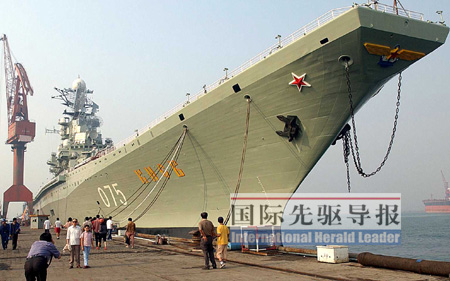 20日,日本防衛(wèi)大臣濱田靖一訪問北京時,據(jù)《日本經(jīng)濟新聞》、共同社等多家日本主流媒體報道,會見他的中國國務(wù)委員兼國防部長梁光烈表示,中國是惟一沒有航母的大國,中國不能永遠沒有航母。