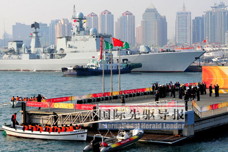 據(jù)了解,青島海軍節(jié)期間,除了國際海軍分列式、海軍方隊、軍樂隊表演,飛機臨空受閱等活動外,還可能同時還舉辦相關的海軍問題國際研討會。中國海軍也將在此期間,展示“中華神盾”級導彈驅(qū)逐艦、新型兩棲船塢登陸艦等一批新式裝備,達到“對外展示實力、對內(nèi)振奮士氣”的效果。