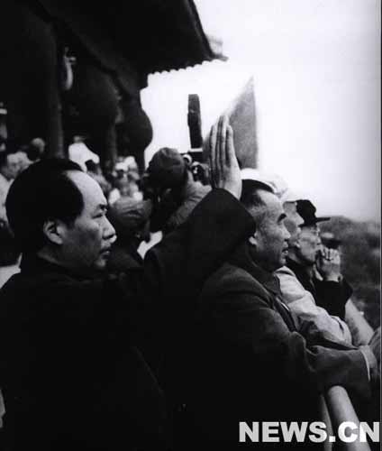 閱兵式接近結(jié)束時(shí),天色已晚,天安門廣場這時(shí)變成了紅燈的海洋。無數(shù)的彩色火炮從會場四周發(fā)射。歡呼著的群眾在閱兵式完畢后開始游行。當(dāng)群眾隊(duì)伍經(jīng)主席臺附近走出會場時(shí),"人民共和國萬歲!""毛主席萬歲!"的口號聲響入云霄。毛主席在擴(kuò)音機(jī)前大聲地回答著:"同志們?nèi)f歲!"毛主席伸出身子一再地向群眾招手,群眾則歡呼鼓掌,手舞足蹈,熱情洋溢,不能自己。當(dāng)游行的隊(duì)伍都已有秩序地一一走出會場時(shí),已是晚間九點(diǎn)二十五分。舉著紅燈游行的群眾象火龍似地穿過全城,使新的首都浸在狂歡里直到深夜。(新華社北京1949年10月1日電)