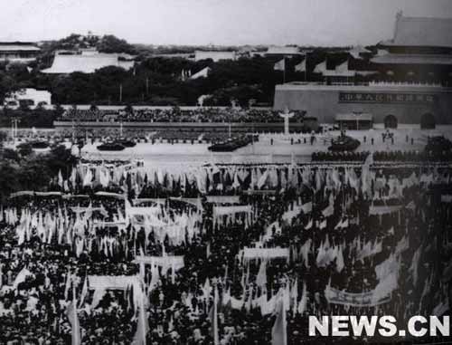 "中國共產(chǎn)黨萬歲!""毛主席萬歲!"的歡呼聲響徹天安門的廣場。人民感謝偉大祖國社會主義建設(shè)的組織者和鼓舞者。