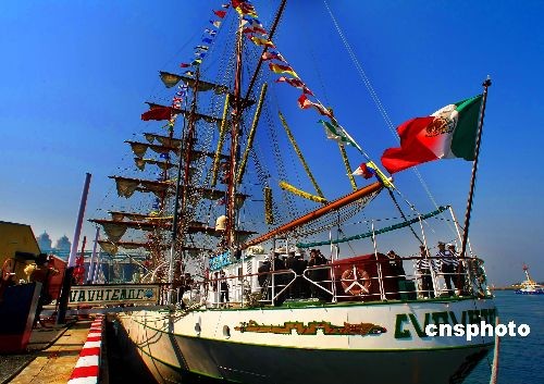 記者在現(xiàn)場看到,青島市民可登上部分外國軍艦甲板參觀。造型獨(dú)特的墨西哥海軍“夸烏特莫克”號風(fēng)帆訓(xùn)練艦最吸引公眾目光,不少市民爭相拍照留念。