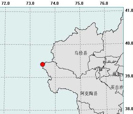 據(jù)測定,震中位于北緯 39.4°,東經(jīng) 73.5°,地處新疆克孜勒蘇柯爾克孜自治州阿克陶縣邊境線上。