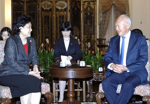 中新網(wǎng)4月26日電 正在新加坡訪問的中國國務(wù)委員劉延?xùn)|25日在新加坡總統(tǒng)府會見了新加坡內(nèi)閣資政李光耀。