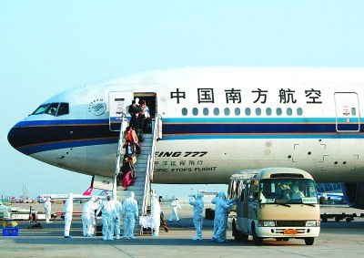 5月6日17時(shí)15分,當(dāng)檢驗(yàn)檢疫人員登上南航包機(jī),完成機(jī)上人員的所有檢查項(xiàng)目后,盧洪洲教授的聲音通過手機(jī)從機(jī)艙里傳過來:“太好了,回到祖國了!機(jī)上所有人員都挺好!”