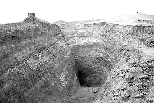 現場分布著5個盜坑,其中北側的一個新盜洞竟有25米深。有關人員借用吊車進入盜洞,發(fā)現仍有盜墓工具遺留在洞內。實際上,盜墓者此時還沒有發(fā)現墓室。專業(yè)人員判斷:他們還有繼續(xù)盜掘的可能。為此,青銅峽市文物管理所不僅及時向青銅峽市文化體育局和自治區(qū)文物局作了匯報,而且致函公安機關,通報有關情況,希望盡快破案。