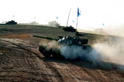 展望未來。北京軍區(qū)坦克乘員訓(xùn)練基地司令員陳躍激動(dòng)地說,我裝甲兵經(jīng)過幾十年艱苦卓絕的奮斗,已從上世紀(jì)80年代的摩托化、90年代的機(jī)械化,再到新世紀(jì)的機(jī)械化信息化復(fù)合發(fā)展。數(shù)字化技術(shù)為我“陸戰(zhàn)之王”插上翅膀,一批新型主戰(zhàn)坦克戰(zhàn)斗技術(shù)性能全面提高,已與世界上最先進(jìn)的坦克沒有“代差”,火力、機(jī)動(dòng)和防護(hù)能力有了質(zhì)的飛躍,達(dá)到了世界領(lǐng)先水平。