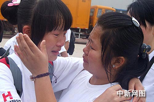 “今天我們就要回家了,又開心又難過,開心的是我們可以回到我們的家鄉(xiāng)見到爸爸媽媽吃麻辣燙了,難過的是我真舍不得照顧我們的叔叔阿姨們還有給我們捐錢捐物的好心的人們。我希望你們有時間都到我的家里玩,我給你們做最地道的麻辣燙!痹6月18日山東省日照市為500多名四川地震災區(qū)的孩子們送行的儀式上,一個名叫劉濤的羌族孩子拉著記者的手聊了起來,稚嫩的小臉上堆滿了即將回家的興奮笑容,但眼睛里卻流露出依依不舍的目光。