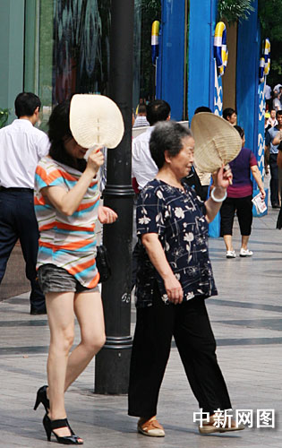 正午時(shí)分,熱浪襲人,路上行人稀少。記者在街頭看到,偶爾經(jīng)過的行人都盡量走在樹蔭下或可遮陽的地方,太陽傘、墨鏡、帽子齊齊上陣,“全副武裝”以減少太陽直射的灼熱感。