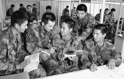 四川都江堰籍新戰(zhàn)士小王,去年5月12日,聽到家鄉(xiāng)地震的消息后,趕忙給家里打電話,聽到的全是忙音,眼淚刷地流下來。
