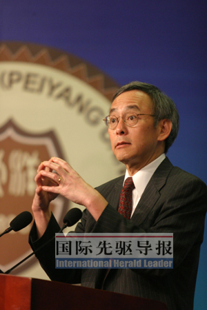 在接受《國(guó)際先驅(qū)導(dǎo)報(bào)》的專訪時(shí),朱棣文說(shuō):“我們倆一起來(lái)到中國(guó),就是要向世界傳遞這樣一個(gè)信息:美中關(guān)系至關(guān)重要。對(duì)我而言,此次訪問(wèn)就是要與中方共同合作降低能耗,并實(shí)現(xiàn)我們兩國(guó)以及世界其他國(guó)家向可持續(xù)利用能源發(fā)展模式的轉(zhuǎn)變!