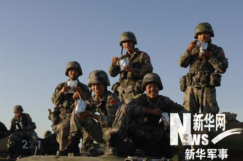 7月21日,在“和平使命-2009”中俄聯(lián)合反恐軍事演習(xí)現(xiàn)場,野戰(zhàn)兵站為參演的陸軍戰(zhàn)斗群某裝甲步兵分隊前送180人份新型野戰(zhàn)自熱食品,讓正在演習(xí)場執(zhí)行任務(wù)無法回野營村就餐的參演官兵吃上了熱菜熱飯。這是此次聯(lián)合軍事演習(xí)開始以來首次在演習(xí)場采取野戰(zhàn)自熱食品保障。 (崔秀文、顏云鵬)