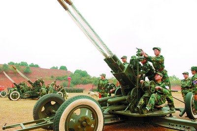 芙蓉區(qū)女子高炮分隊(duì)是會操現(xiàn)場一道亮麗的風(fēng)景線。隨著一陣響亮整齊的口號聲,90名高炮分隊(duì)的女兵以最快速度將6臺高炮推進(jìn)至戰(zhàn)斗位置。隨著指揮員“放列”的命令,各個女炮手迅速找準(zhǔn)各自位置,打扛起螺桿,使火炮輪胎離地,行軍狀態(tài)的火炮立刻轉(zhuǎn)為戰(zhàn)斗狀態(tài)。緊接著,一炮手打動方向機(jī),將火炮轉(zhuǎn)到指揮員所指方向,二炮手將火炮打到規(guī)定的射擊高度,三炮手裝上目標(biāo)距離,四炮手裝上目標(biāo)航速和航向,五、六炮手準(zhǔn)備裝填炮彈。女兵們颯爽的英姿給大家留下了深刻的印象。(記者 彭瑋蔚 通訊員 付明 黃岡 周坤)
