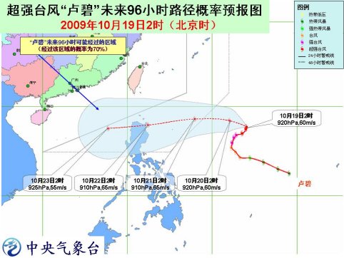 預計,“盧碧”將先以每小時5公里左右的速度緩慢向偏北方向移動,19日中午以后將逐漸轉(zhuǎn)向西偏北方向移動,移速逐漸加快,強度還將有所增強。受“盧碧”和冷空氣的共同影響,19日白天到夜間,臺灣海峽、臺灣以東洋面、巴士海峽、巴林塘海峽、臺灣沿海、福建沿海的風力將逐漸加大到7-8級,部分海域和地區(qū)陣風可達9-10級。