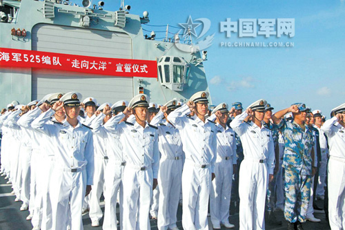 “我不是軍人,但我卻不自覺地?zé)釡I盈眶,神圣地舉起了右手宣誓!”新華社隨艦記者楊志剛?cè)缡钦f(shuō)。