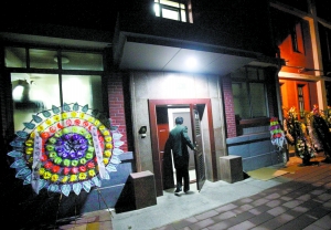夜色還未褪盡,記者來到位于航天橋航天大院內(nèi)的錢學(xué)森靈堂外。位于一層的靈堂此時已是燈影幢幢,單元門外擺放的花籃、花圈并沒有被撤走,依舊簇?fù)碇睾蛟陟`堂門外。